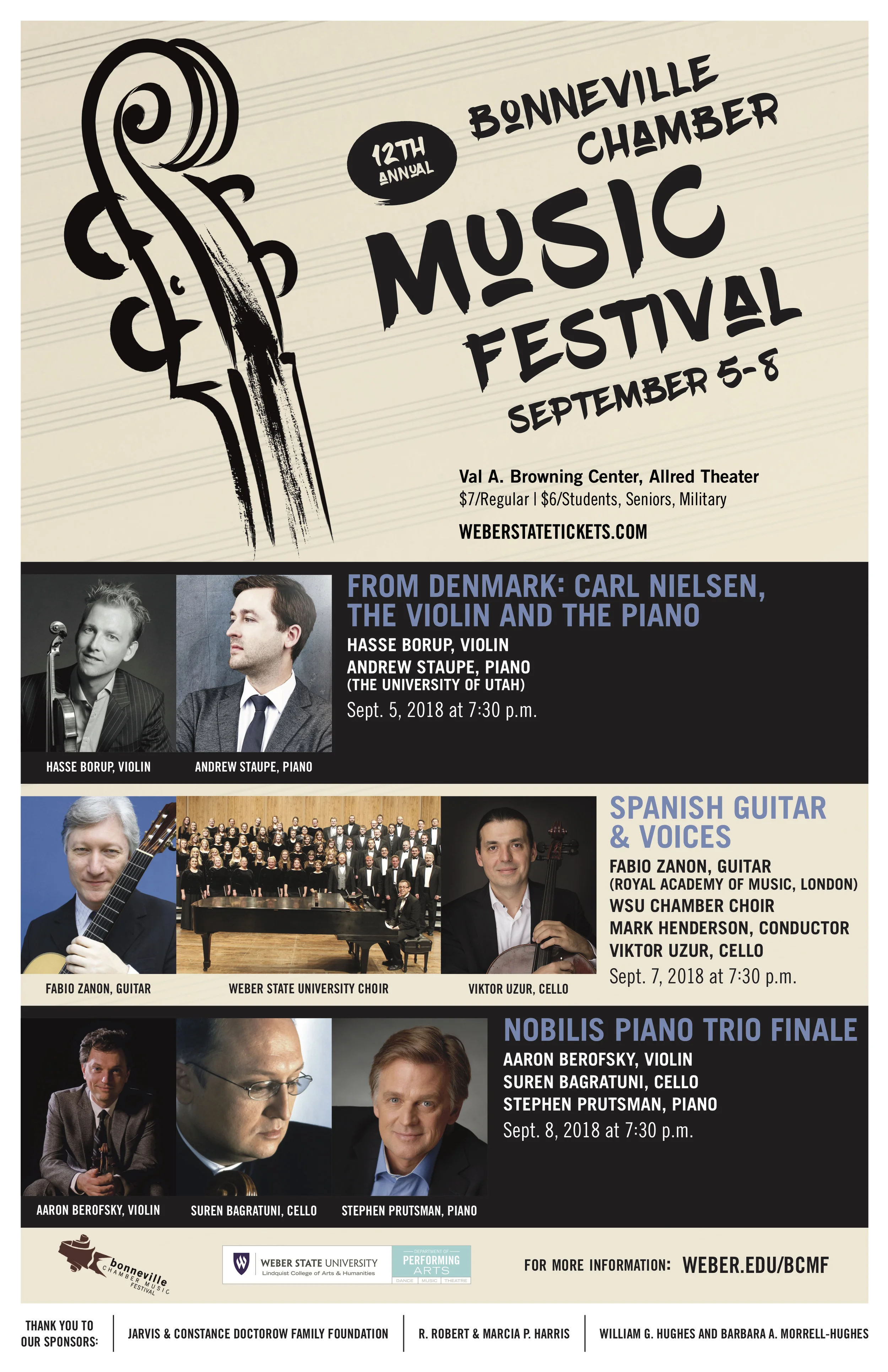 Masterpieces by Brahms and Schubert brought to Utah by internationally acclaimed Nobilis Piano Trio: Aaron Berofsky, violin, University of Michigan faculty; Suren Bagratuni, cello, Tchaikovsky Competition Silver Medalist and Michigan State University faculty; Stephen Prutsman, Laureate of Queen Elizabeth and Tchaikovsky Competitions.